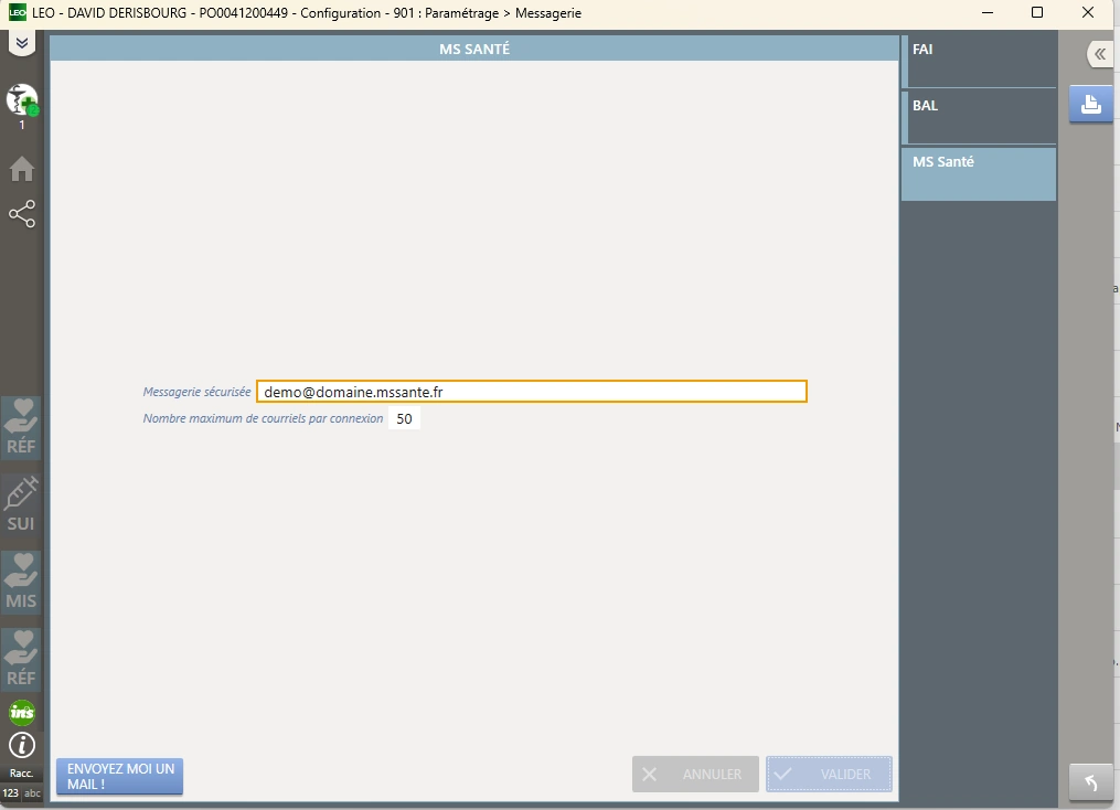 4. Vérifiez l’adresse électronique renseignée, puis cliquez sur ☑ VALIDER.