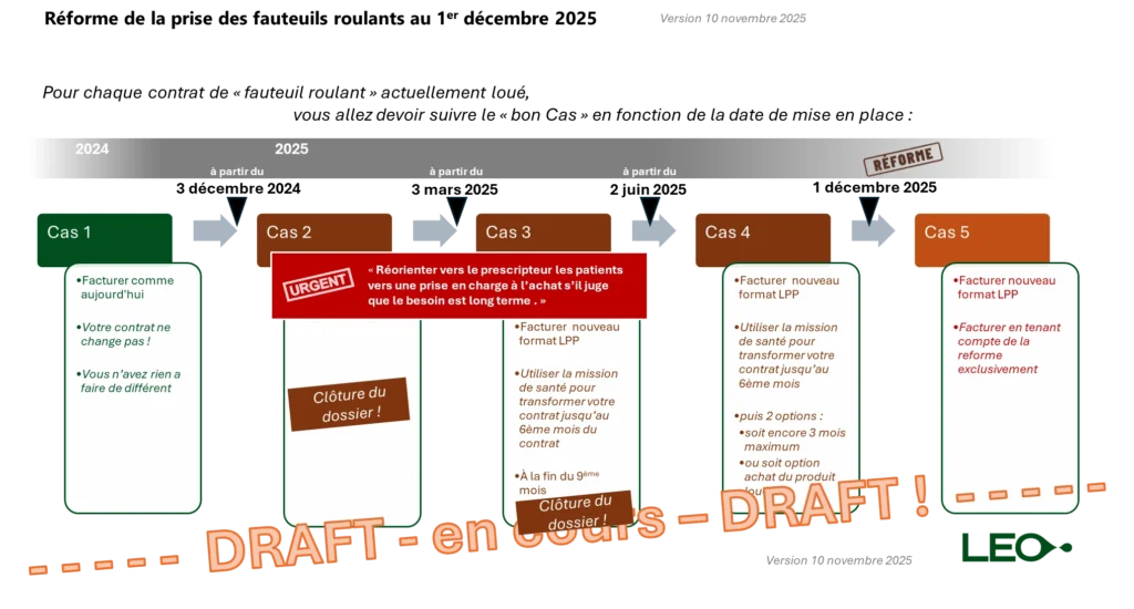 Dans le délai restant avant le 1er décembre, pour les locations comprises entre le 3 décembre 2024 et le 1er juin 2025 : « Réorienter vers le prescripteur les patients vers une prise en charge à l’achat s’il juge que le besoin est long terme » .